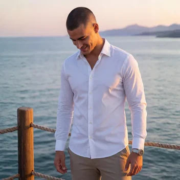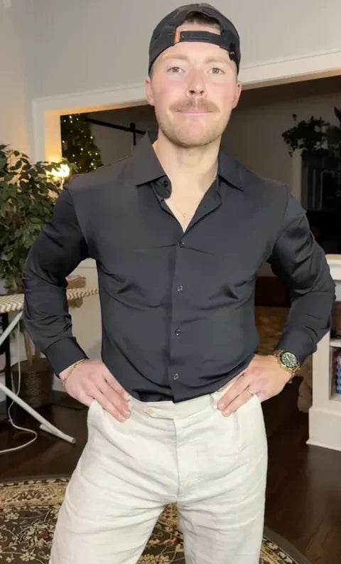 RRich S.Verified BuyerSehr empfehlenswert!Dieses Hemd hat meine Art, mich für die Arbeit zu kleiden, verändert. Ich denke gar nicht mehr über Komfort nach, weil er einfach gegeben ist. Der Stoff fühlt sich hochwertig an, bleibt den ganzen Tag frisch und gibt mir ein ruhiges Selbstbewusstsein – als würde ich es wieder genießen, mich schick anzuziehen
